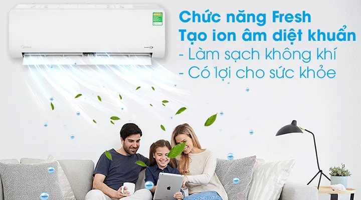 Sức khỏe hô hấp là yếu tố được nhiều người quan tâm khi lựa chọn điều hòa. Midea MSAGII-13CRDN8 trang bị bộ lọc bụi kép tiên tiến, bao gồm lưới lọc mật độ cao và lưới lọc tăng cường. Cấu trúc lưới siêu nhỏ này giúp giữ lại hiệu quả hơn 50% các hạt bụi bẩn, vi khuẩn và các tác nhân gây dị ứng có trong không khí. Bên cạnh đó, chức năng Fresh tạo ion âm còn góp phần thanh lọc không khí, mang lại môi trường sống trong lành, an toàn cho sức khỏe của cả gia đình, giảm thiểu nguy cơ mắc các bệnh về đường hô hấp.